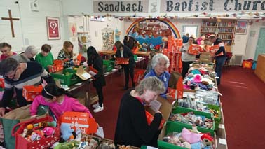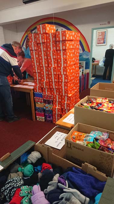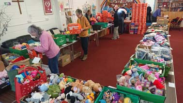 We had a fabulous morning packing the shoeboxes on Saturday 1st November. It was a lovely atmosphere and Oasis had quite a buzz. We had people from our fellowship, relations, friends - and this year folks who hadn't been before. It was a great opportunity for them to see first hand exactly what happens with all the donations - and we all enjoyed a well earned cuppa with cake!
