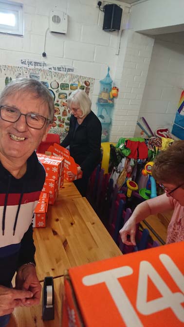 We had a fabulous morning packing the shoeboxes on Saturday 1st November. It was a lovely atmosphere and Oasis had quite a buzz. We had people from our fellowship, relations, friends - and this year folks who hadn't been before. It was a great opportunity for them to see first hand exactly what happens with all the donations - and we all enjoyed a well earned cuppa with cake!